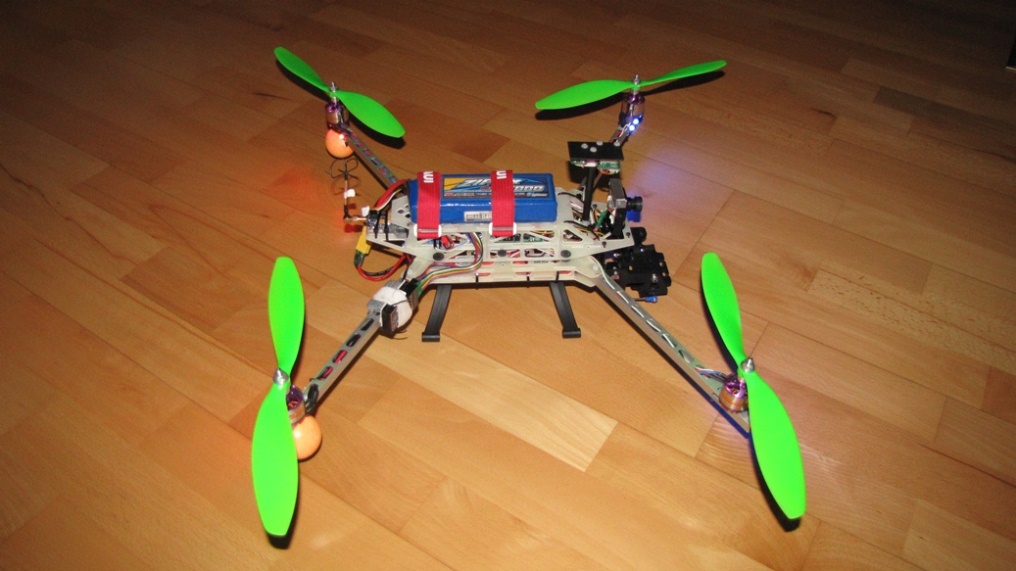 Konstrukcja Quadro obliczona za pomocą kalkulatora: http://www.ecalc.ch/xcoptercalc_e.htm?ecalc