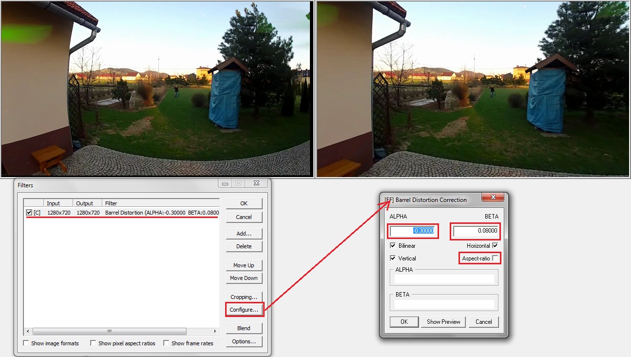 Filtr jak widać działa, jednak jak każda software'owa ingerencja w materiał video wnosi widoczne pogorszenie jeakości obrazu. Po bokach następuje rozmycie i rozciągnięcie filmowanych obiektów. Żadna programowa modyfikacja nie poprawi nam optyki... Optymalnym rozwiązaniem pozostaje metoda nr 1, czyli ryzykowna wymiana optyki.