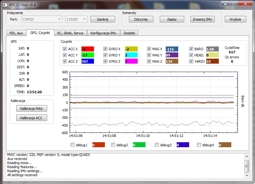 Obsługa czujników GPS, BARO, MAGNETO, ACC, GYRO