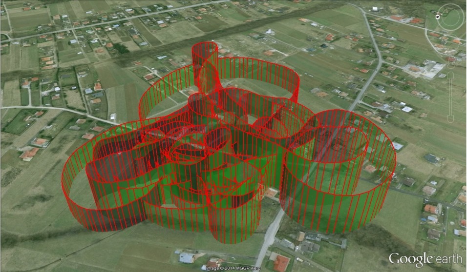 Poniżej przykład wizualizacji logów z lotu w Google Earth. Co ciekawe plik z logami trasy lotu otrzymujemy w formacie kml czyli wprost importujemy do apliakcji Googla.