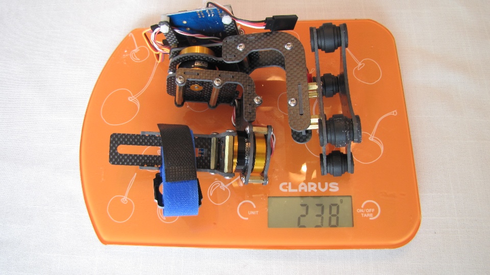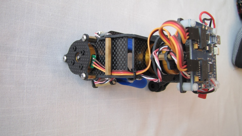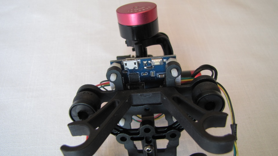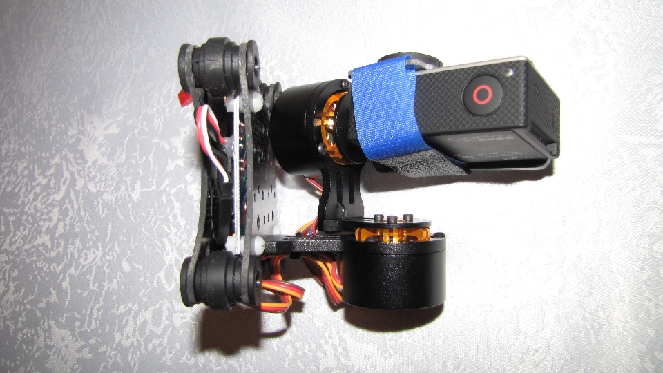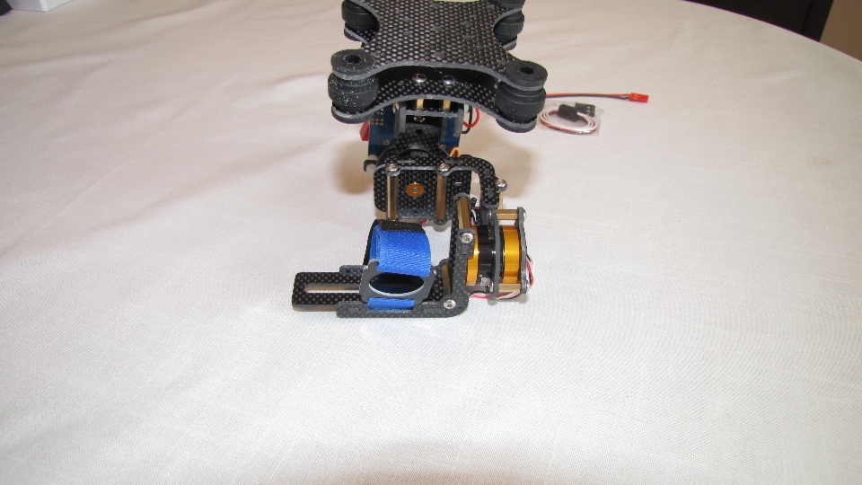 Poniżej zdjecia testowanego gimbala. Mocowanie jak w gimbali "Czerwonym" do profili aluminiowych na kadłubie Q7.