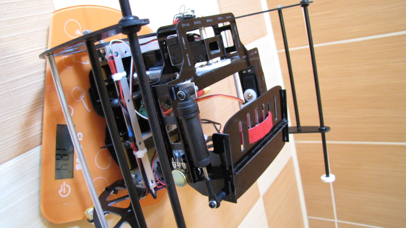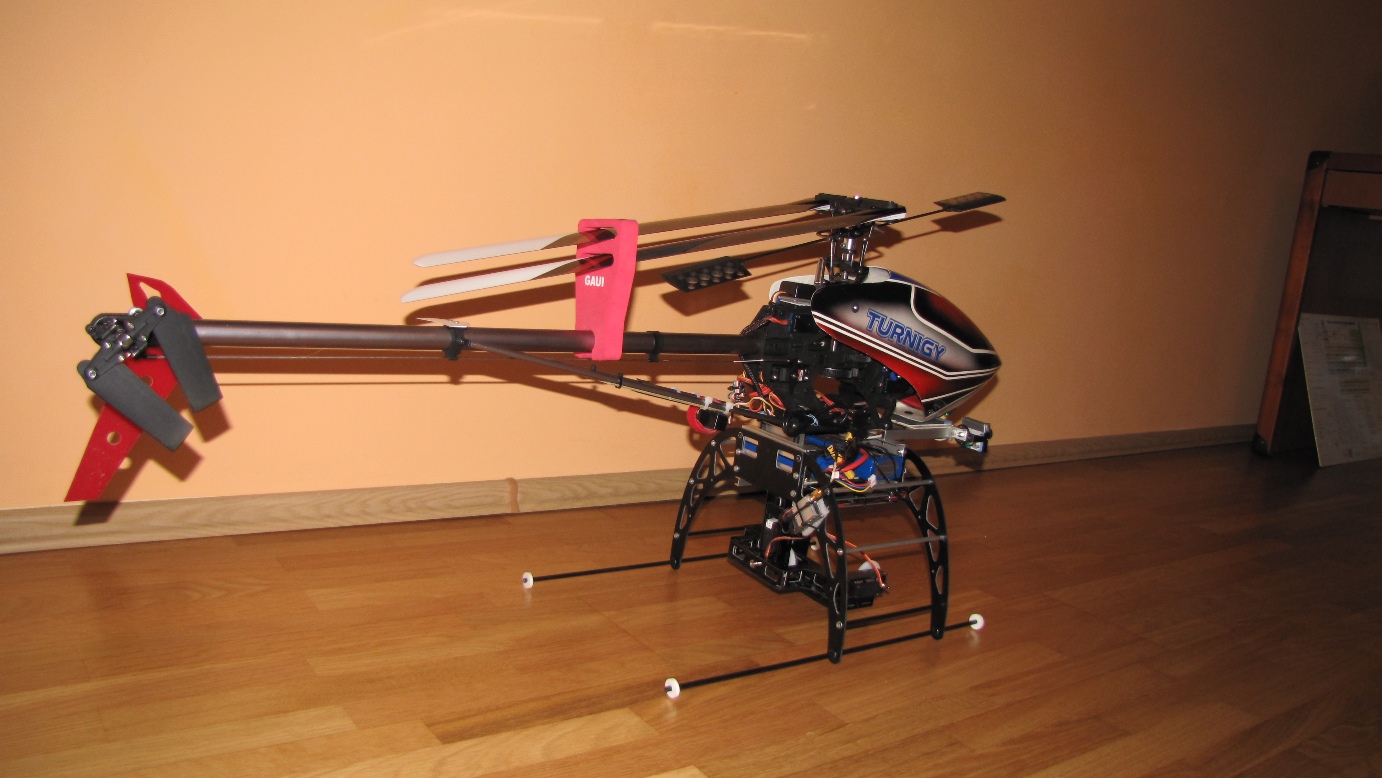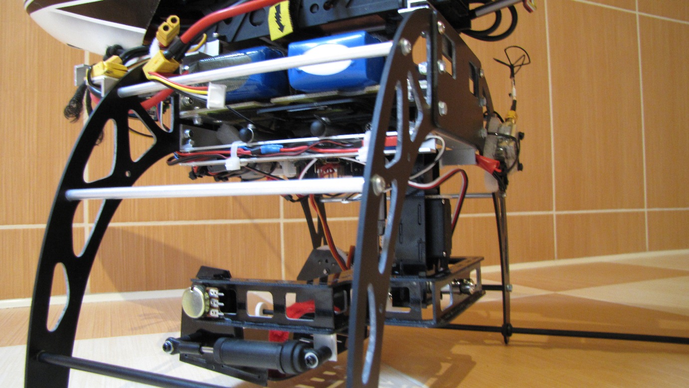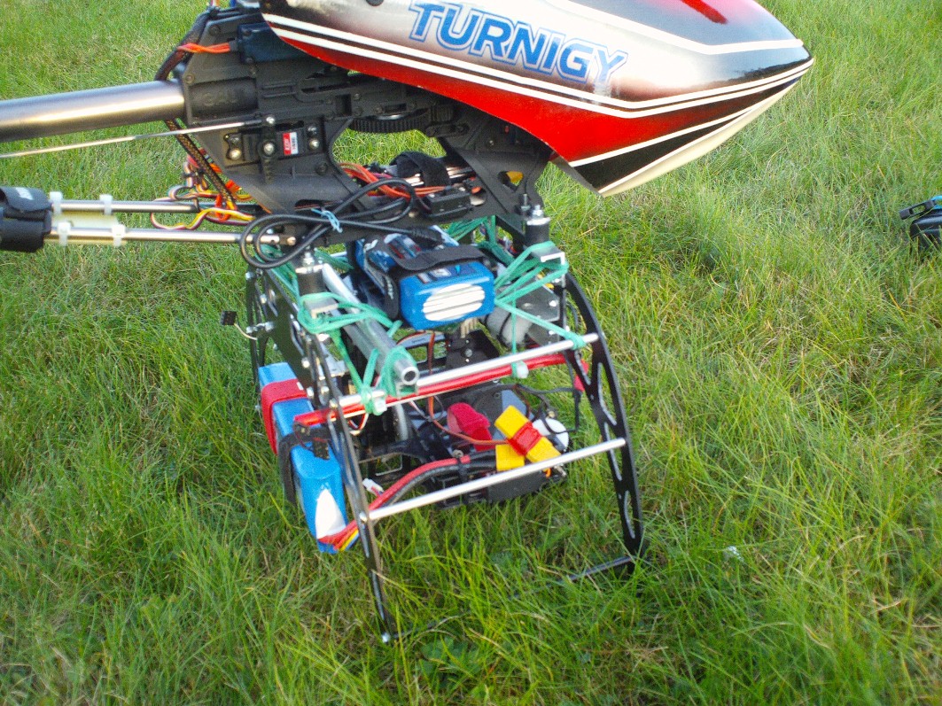 Kilka prób z gimbalem wieszanym na nosie Heli 550 mam już za sobą. Niestety poziom wibracji w Heli jest na tyle duży i zmienny iż trudno zbudować dobrze tłumiące drgania zawieszenie kamery.
