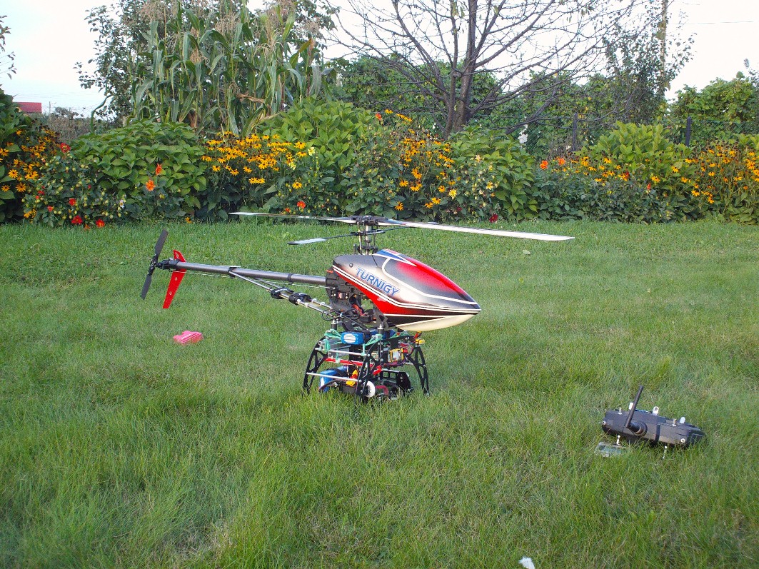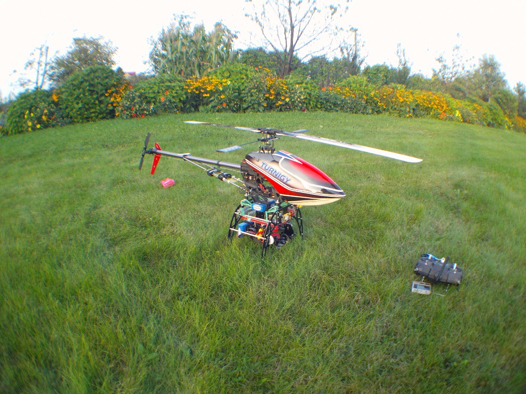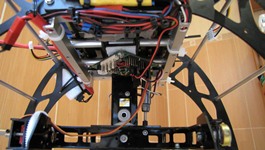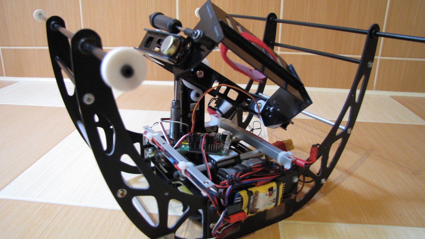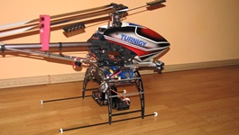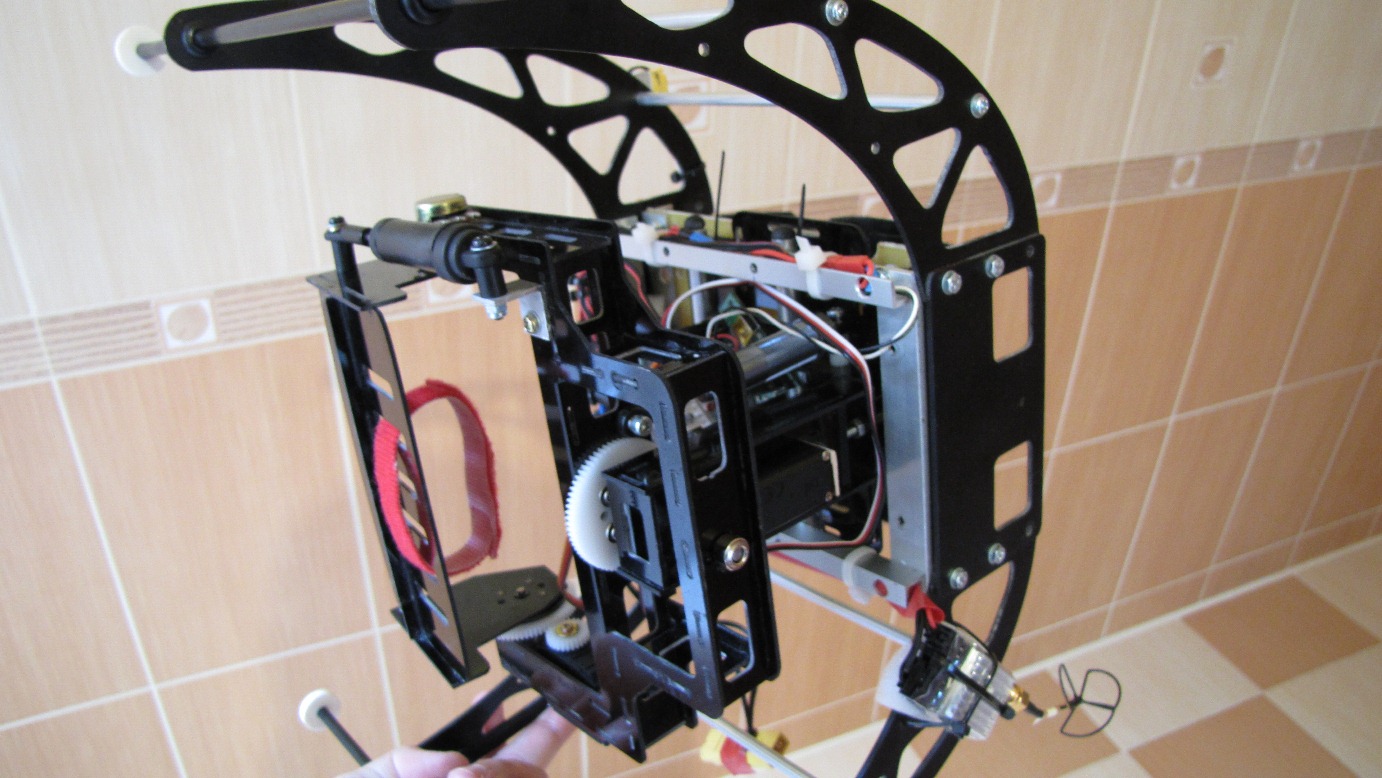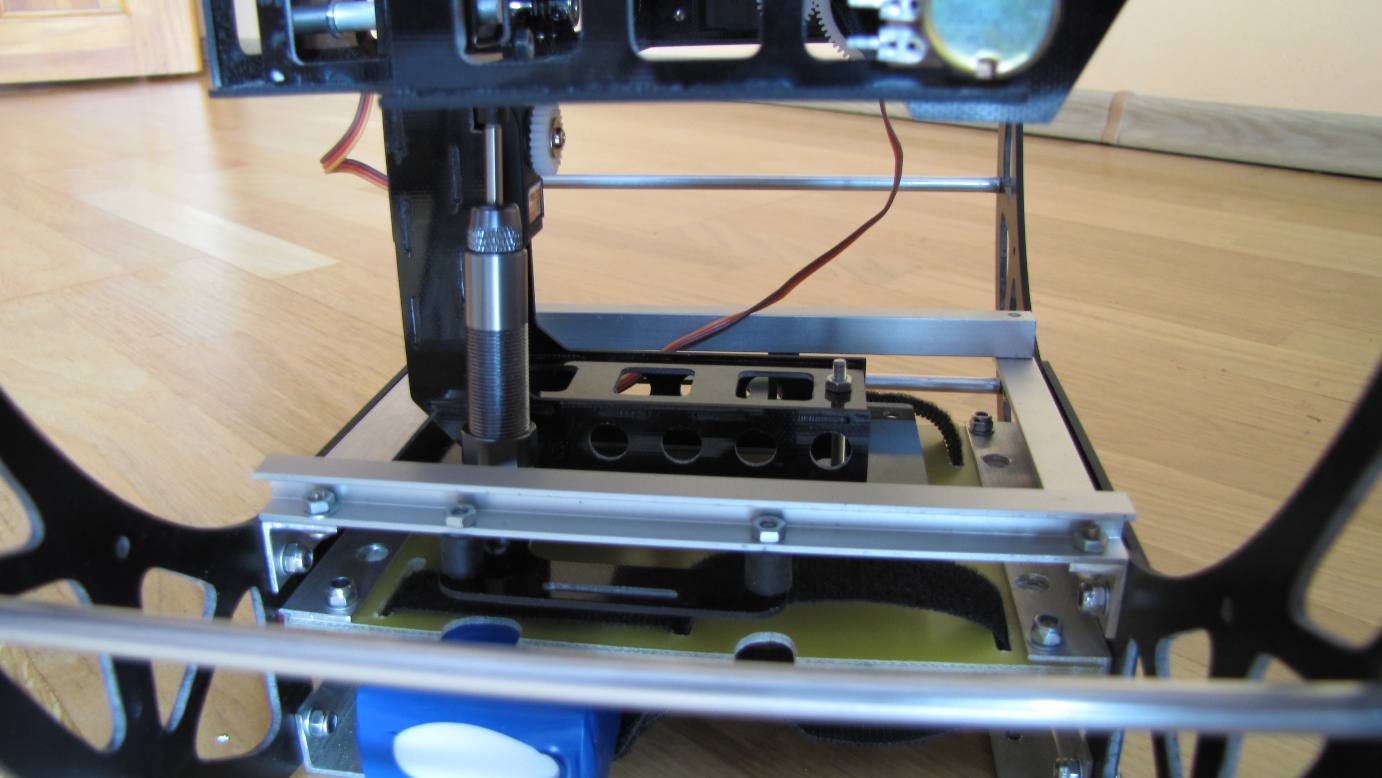 Kilka prób z gimbalem wieszanym na nosie Heli 550 mam już za sobą. Niestety poziom wibracji w Heli jest na tyle duży i zmienny iż trudno zbudować dobrze tłumiące drgania zawieszenie kamery.