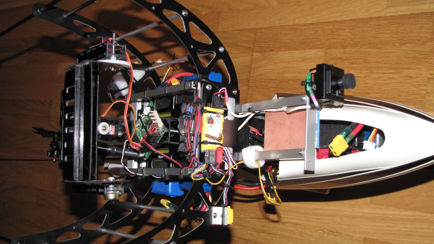 - kamera video Sony 600TVL WDR2, Multiwii by Kuki + AHI - sztuczny horyzont v1.9&pirzol, OSD Remzibi +IMU+GPS, BEC 6V, link video 5,8GHz