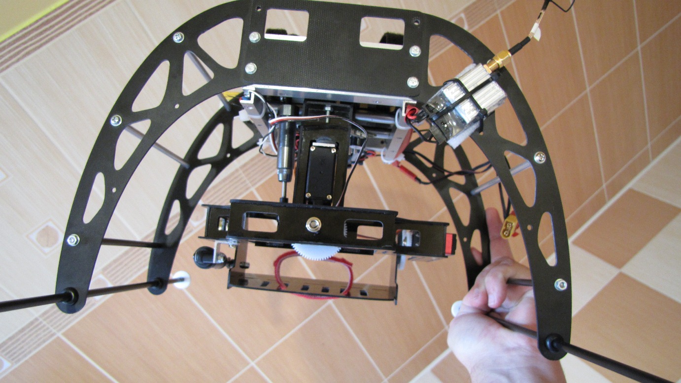 Na fotkach widoczne kilka wersji mocowania gimbala do podwozia...