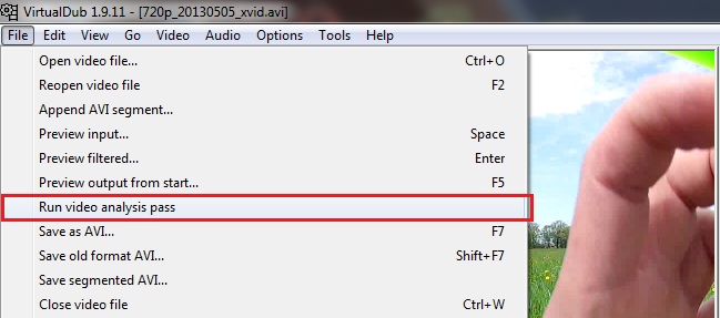 ■ Wybierz w menu File virtualdub'a "Run video analysis pass" .