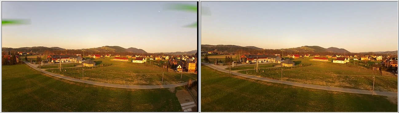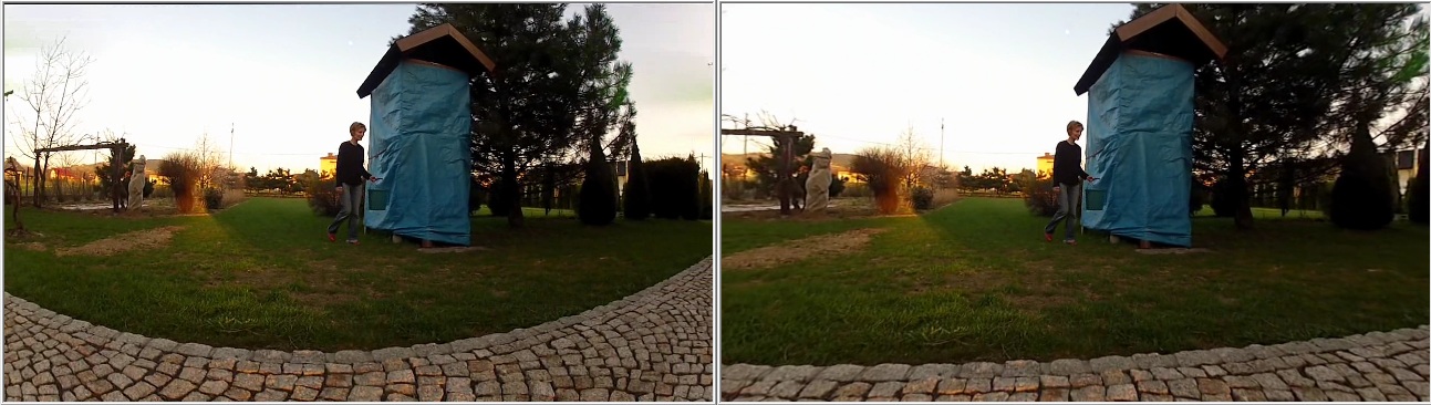 Filtr jak widać działa, jednak jak każda software'owa ingerencja w materiał video wnosi widoczne pogorszenie jeakości obrazu. Po bokach następuje rozmycie i rozciągnięcie filmowanych obiektów. Żadna programowa modyfikacja nie poprawi nam optyki... Optymalnym rozwiązaniem pozostaje metoda nr 1, czyli ryzykowna wymiana optyki.