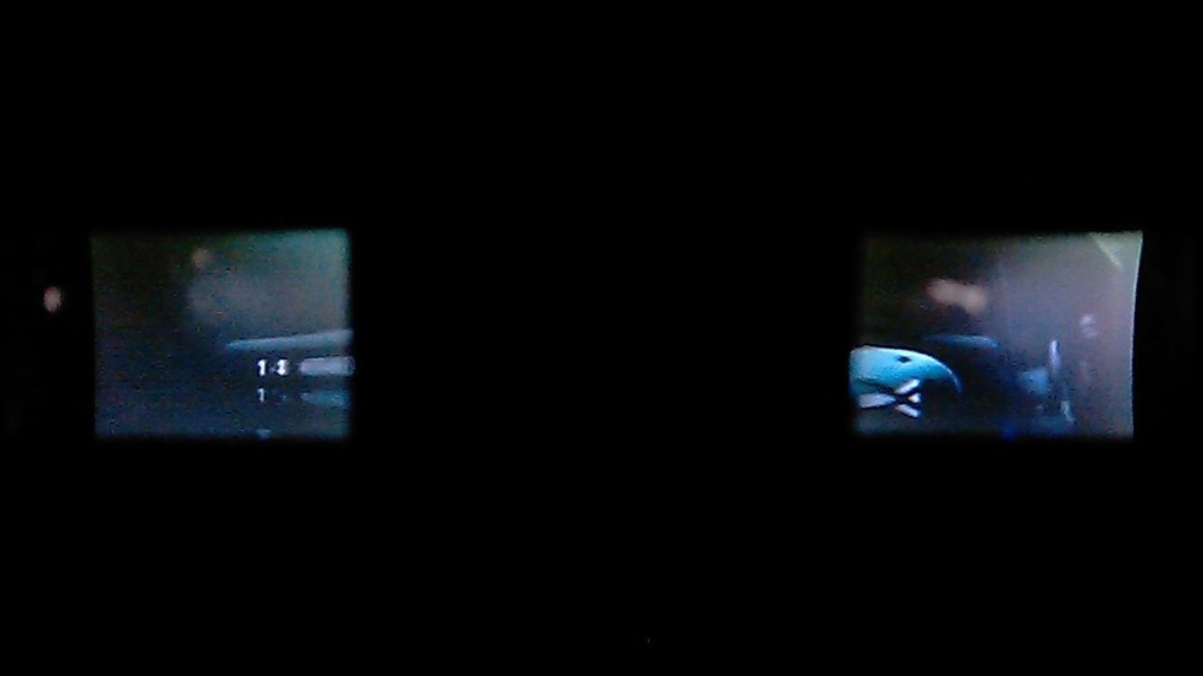 - rozdzielczość LCD 640x480 (symulowany rozmiar 45" TV przed oczami (?) ) obraz delikatnie odsunięty, nieostrość ze względu na brak regulacji rozstawu LCD
