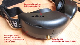 - przełącznik wyboru wejścia sygnału AV, z wbudowanego odbiornika 5.8GHz/ z źródła zewnętrznego