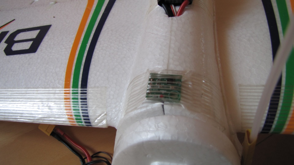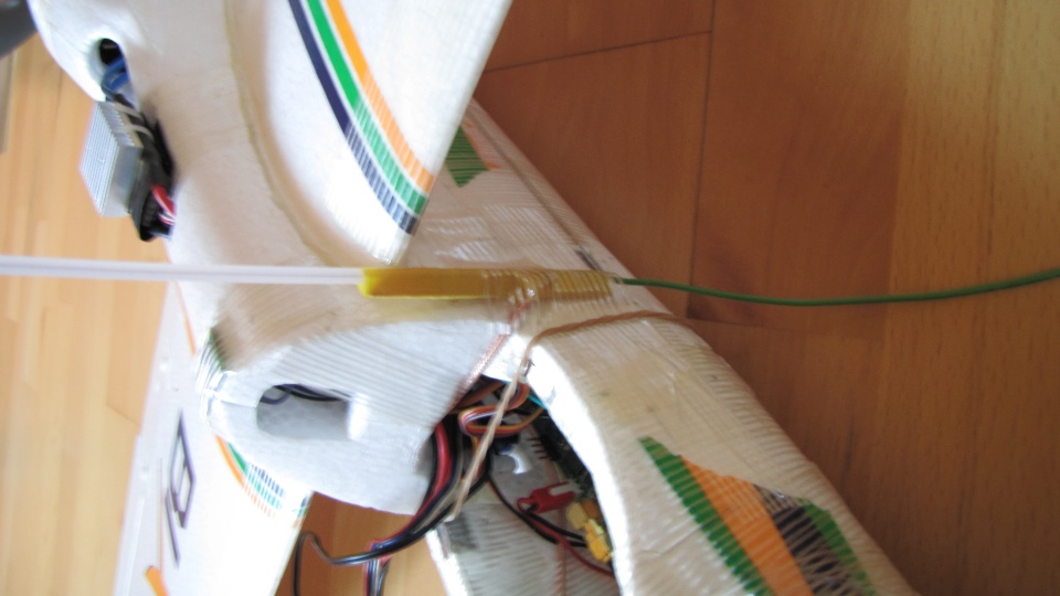 Ktoś może zapytać po co te grzybki na ogonie :), no tak wyszło. Motoszybowiec nadal lata i to całkiem nieźle, wzrosła jedynie jego minimalna prędkość ze względu na delikatny przyrost masy (osprzęt FPV). Tak więc nie posiadł właściwości aerodynamicznych wahadłowca - cegły, nadal potrafi szybować.