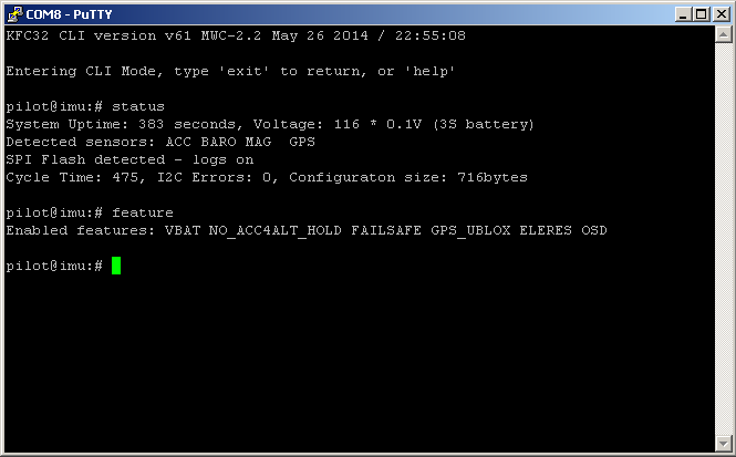 KFC32FTB nie posiada zintegrowanego portu USB/TTL, za miast tego posiada port RS- TTL do którego podpinamy konwerter RS/TTL-USB, np. z seri PL2303. Dzięki temu płytka jest mniejsza a interfejs do komunikacji nie musimy mieć cały czas na pokładzie, wystarczy wpiąć podczas serwisowania komputera na ziemi.