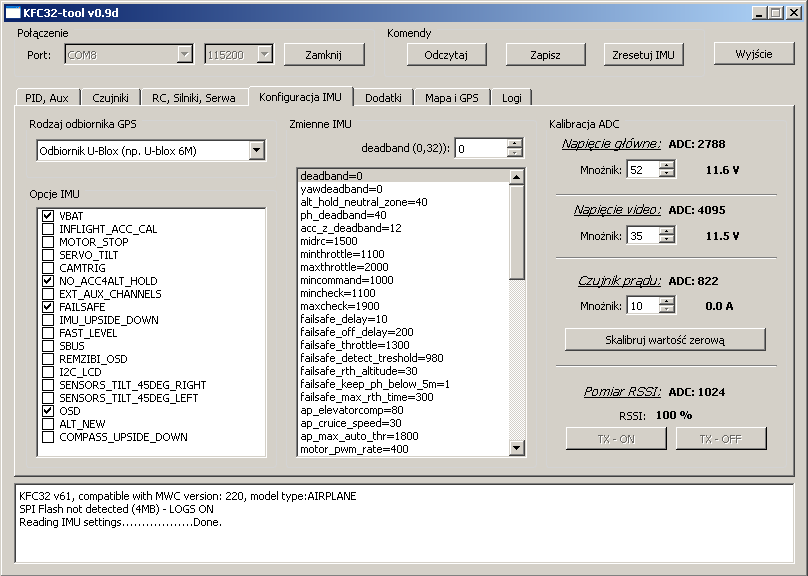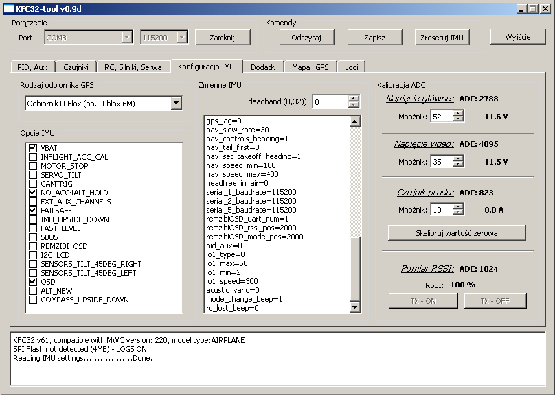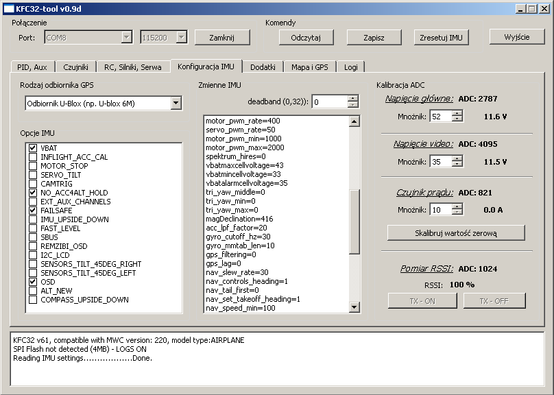 - komputer KFC32FTB musi być dobrze przymocowany do kadłuba, w miejscu umożliwiajacym łatwy dostęp, polecam wyprowadzić przewód od złącza RS/GUI