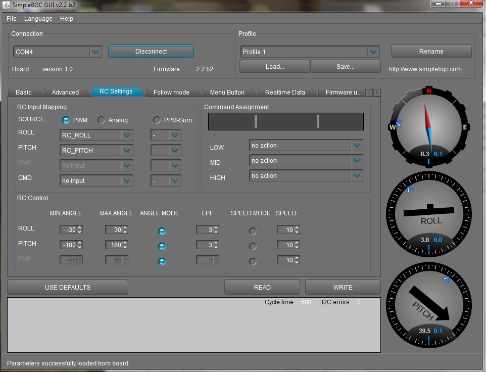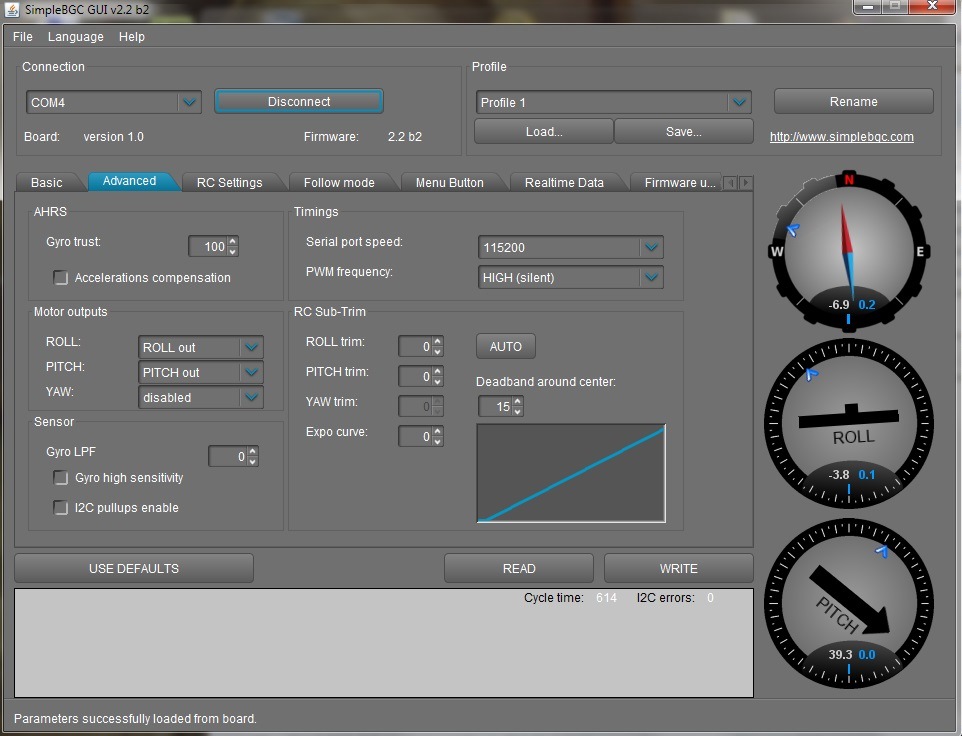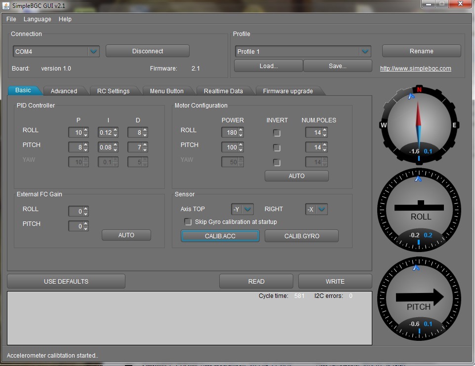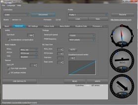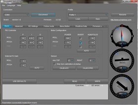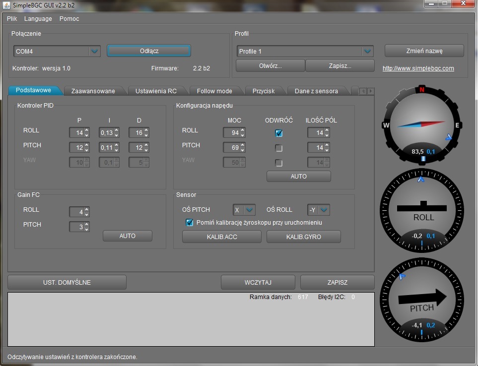 Fabryczne ustawienia PID odczytane z sterownika. Producent nie umiescil oznaczeń na silnikach, nie znamy ilości pól. Jezeli nie chcemy domyślać sie jakiego typu mamy silniki warto odczytać ustawienia z programu i zachowac je na dysku. Oczywiście możemy tez spóbowac odczytać te parametry automatycznie w programie lub policzyć ilość pól oglądając silnik. Przy zwartej budowie korpusu może to być trudne do wykonania bez jego rozbierania.