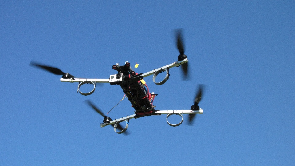 Film nakręcony z pokładu Q7 z półką 45 stopni i kamera GoPro3 zamocowaną na sztywno do półki w miejscu mocowania gimbala standardowego.