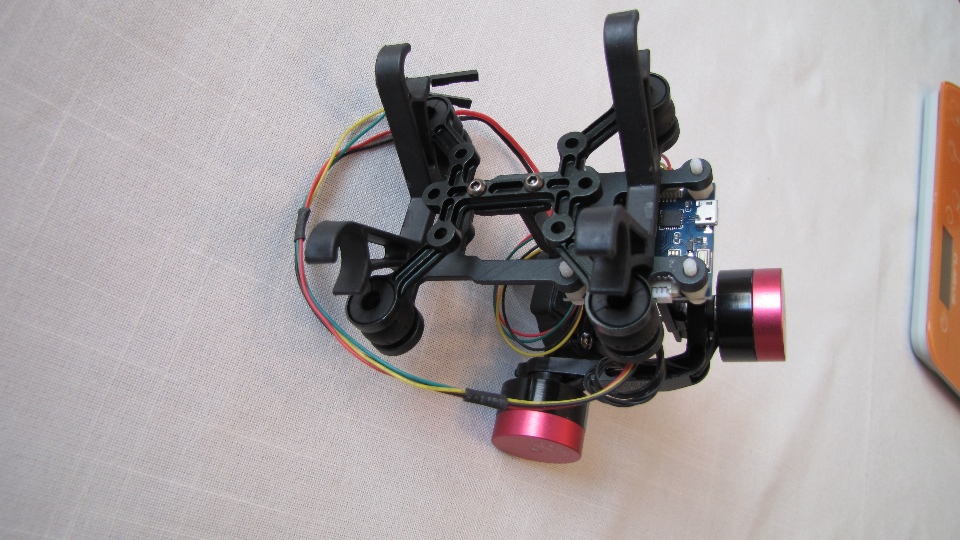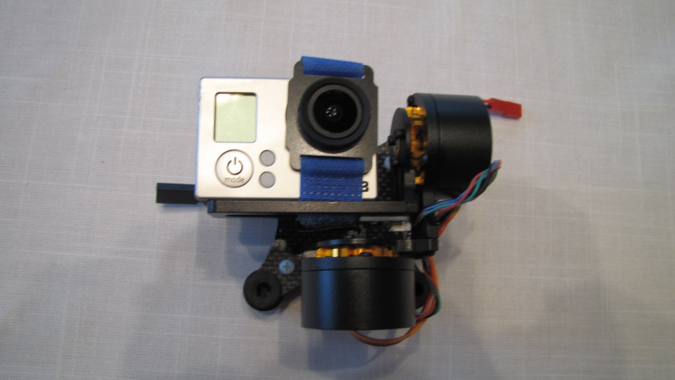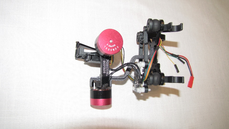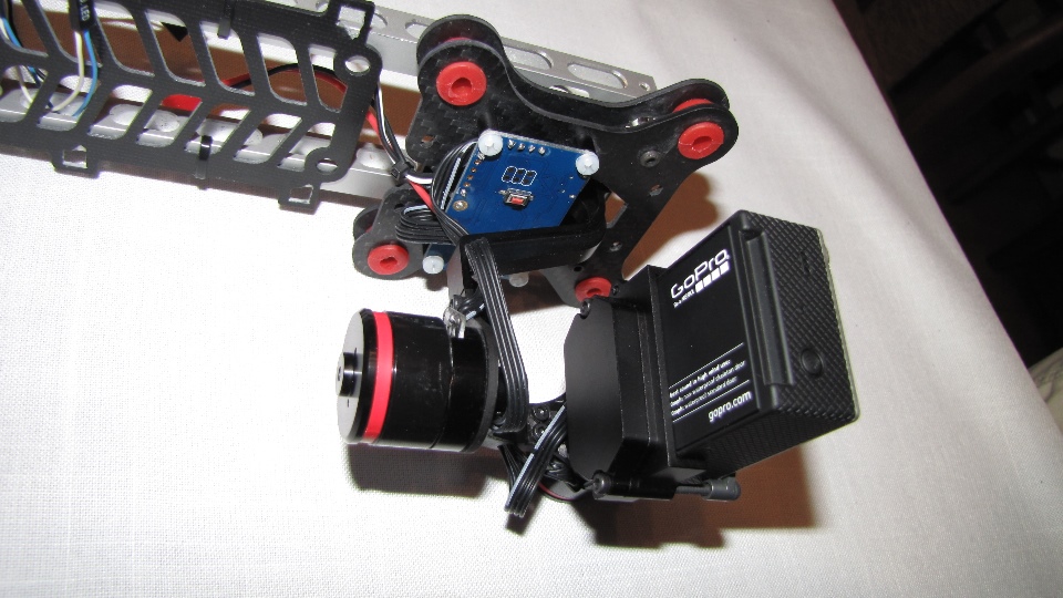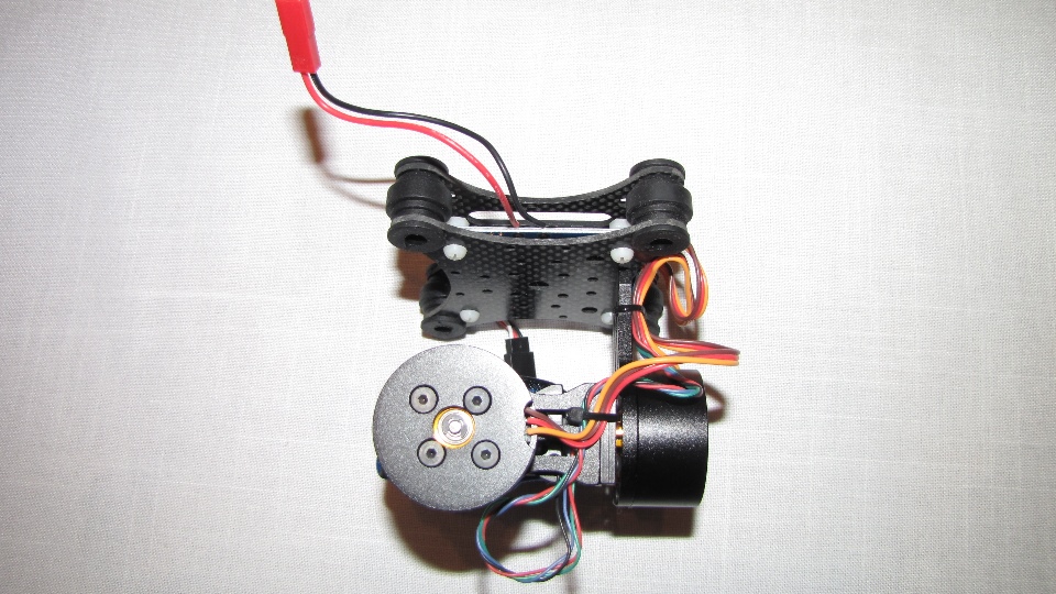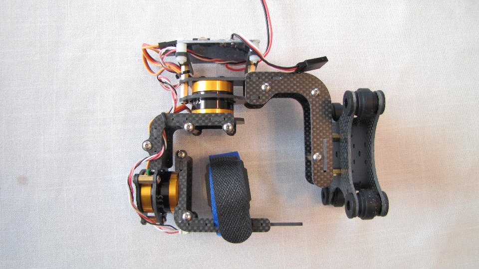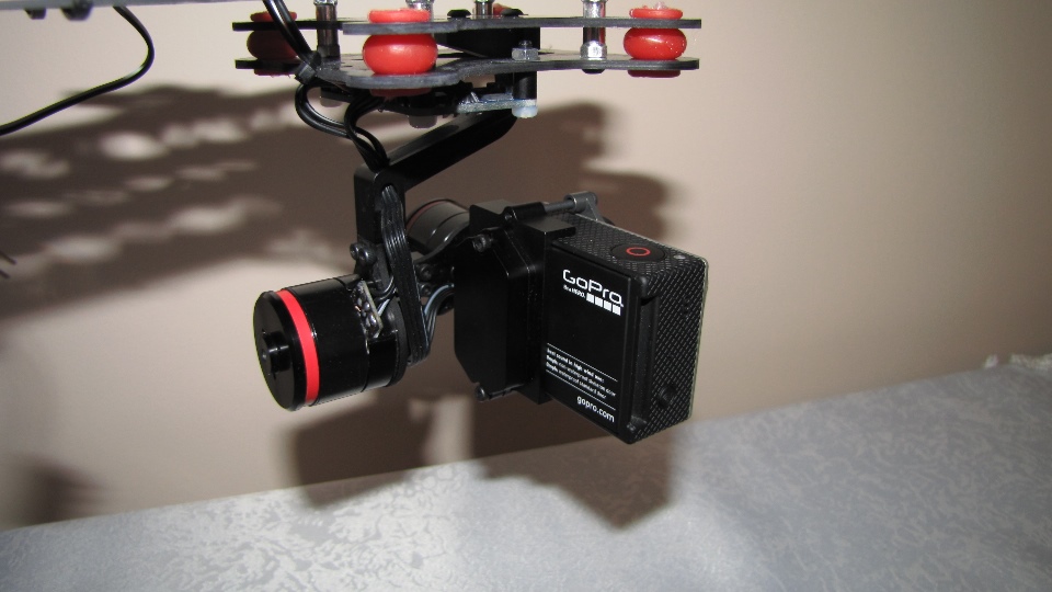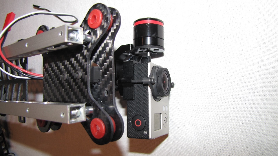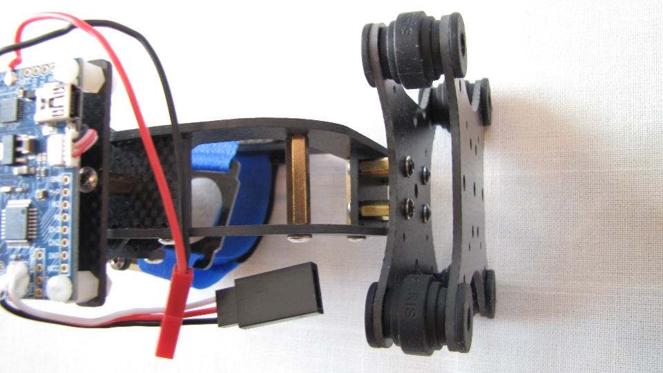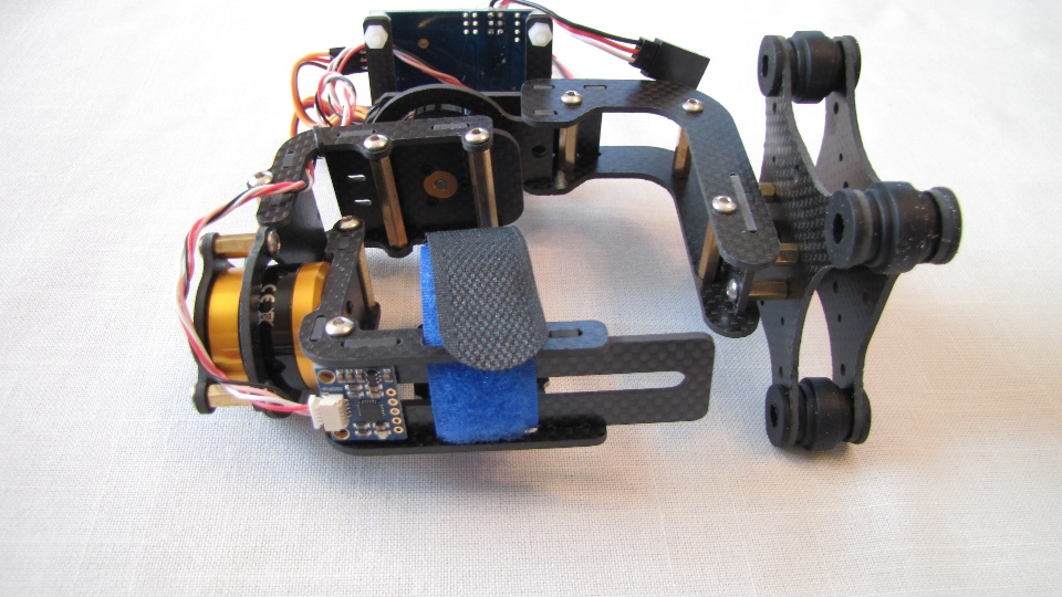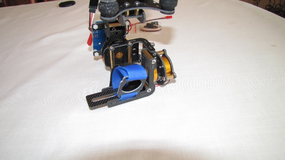 Poniżej zdjecia testowanego gimbala. Mocowanie jak w gimbali "Czerwonym" do profili aluminiowych na kadłubie Q7.