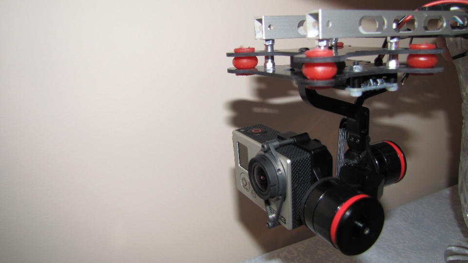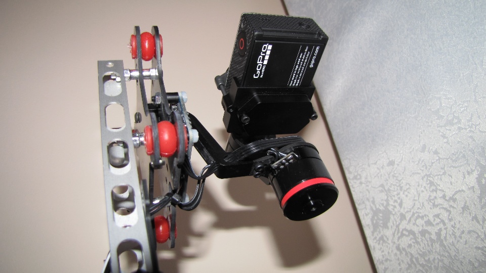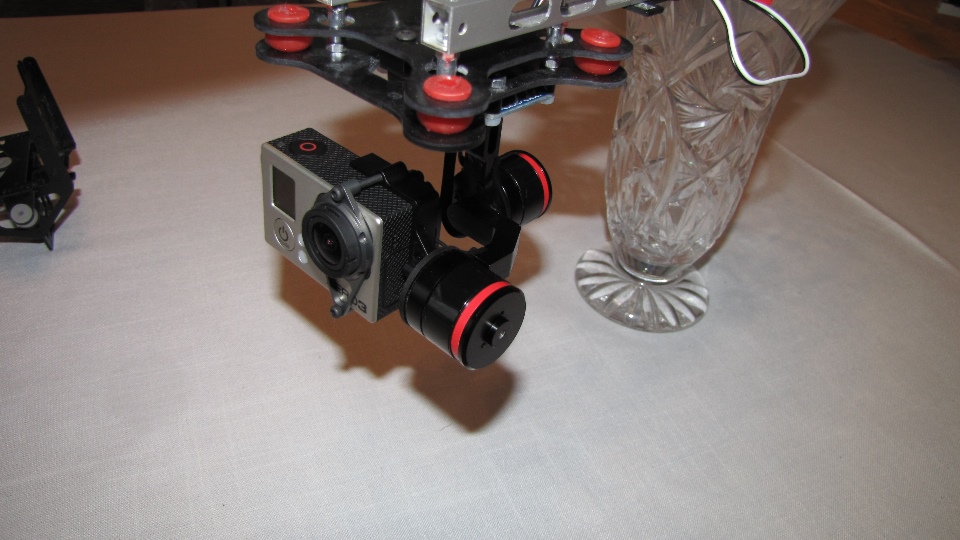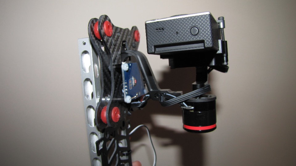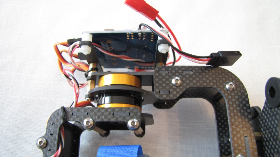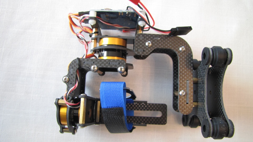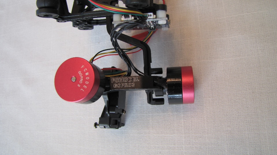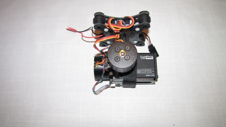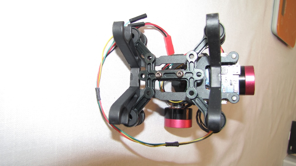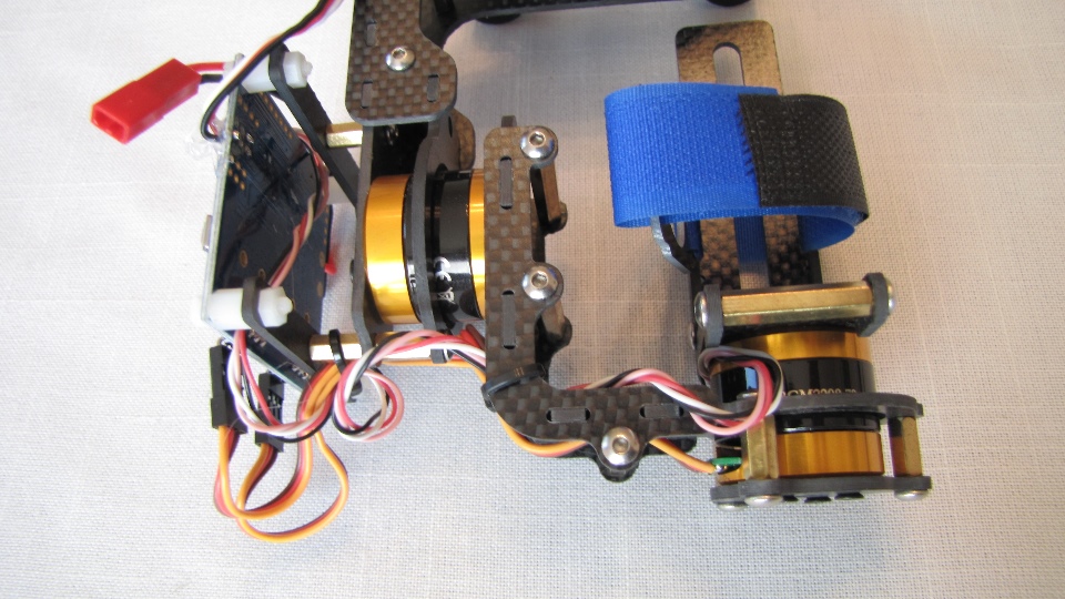 Poniżej zdjecia testowanego gimbala. Mocowanie jak w gimbali "Czerwonym" do profili aluminiowych na kadłubie Q7.