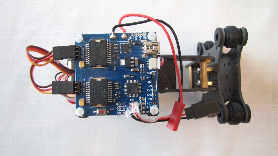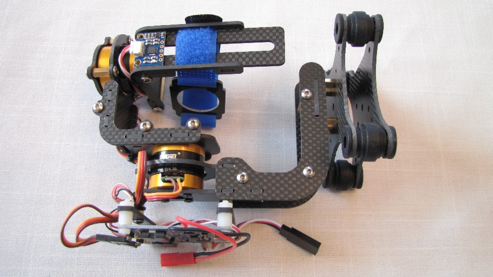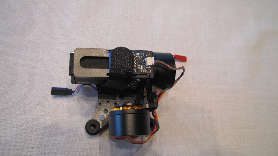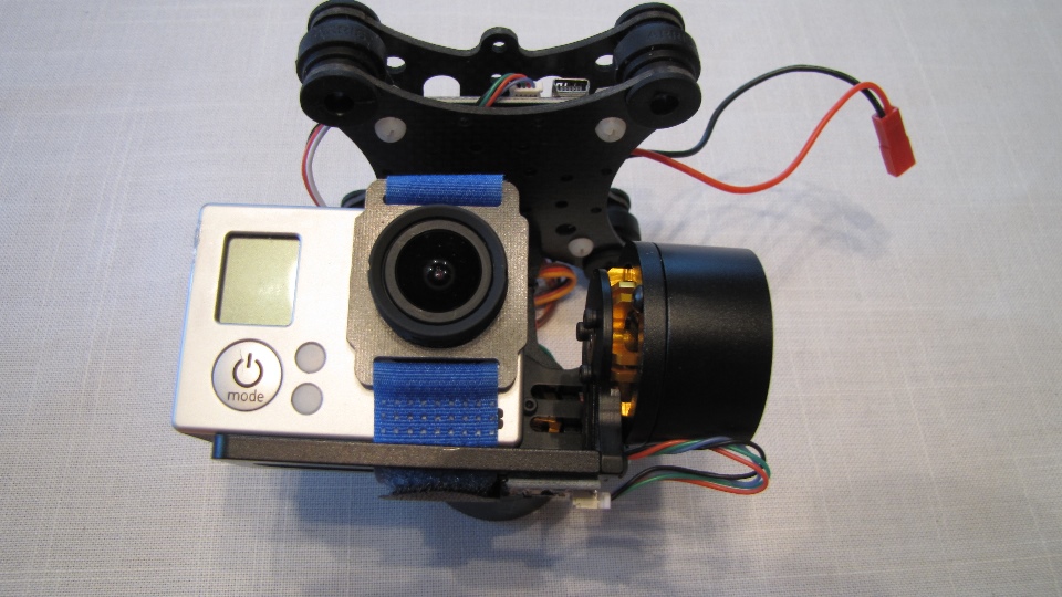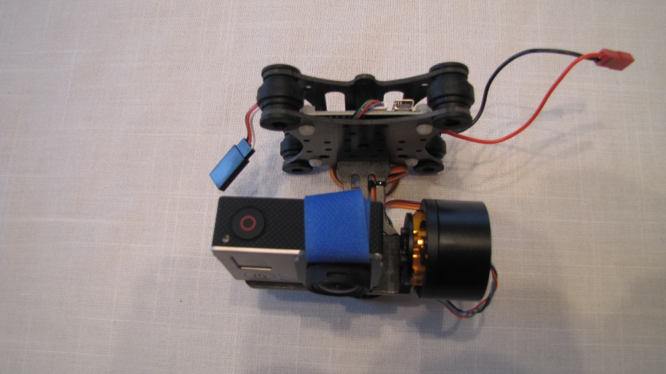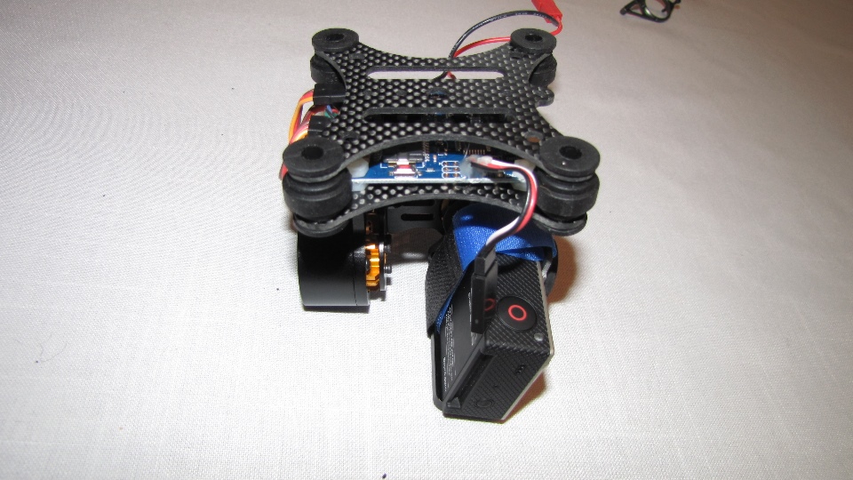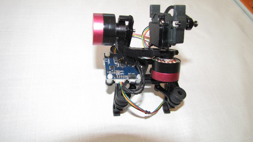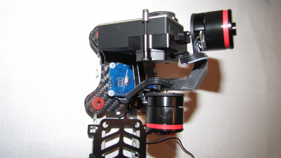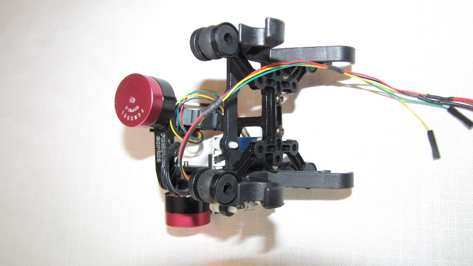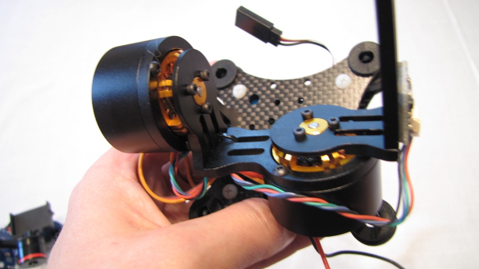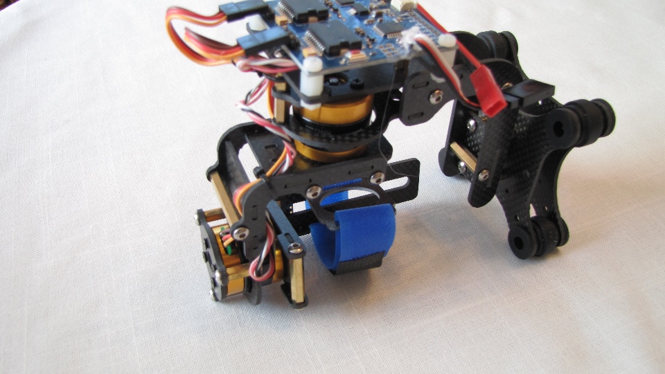 Poniżej zdjecia testowanego gimbala. Mocowanie jak w gimbali "Czerwonym" do profili aluminiowych na kadłubie Q7.