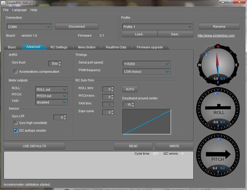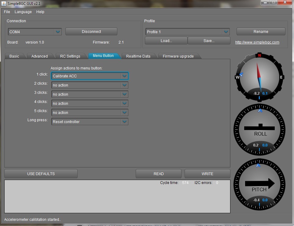 - czujnik ACC/GYRO przyklejony do ramienia Pitch bez osłonki.
