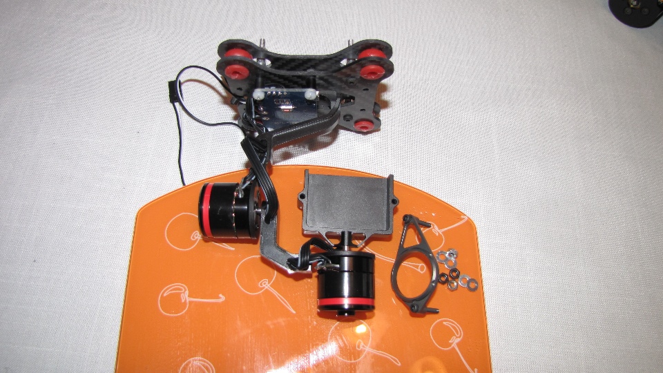 Poniżej zdjecia mocowania gimbala do płyty zakrywającej elektronikę w Q7 oraz samego testowanego gimbala.