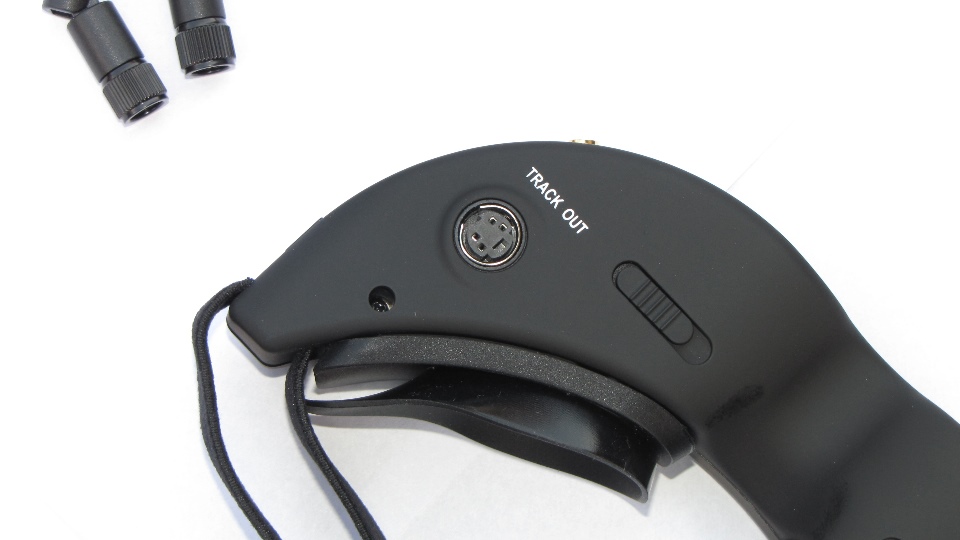 Pod spodem goggli zauważymy podłużne klawisze - regulację rozstawu monitorów LCD. Bardzo pomocna i przydatna funkcja, której niestety zabrakło w fatsharkach serii dominator. Najwidoczniej Chinczycy uznali iż wszyscy mają takie same skośne oczka. Po bokach znajdują się gniazda rozszerzeń i wyjść, z lewej na system trackera, z prawej złącza AV.