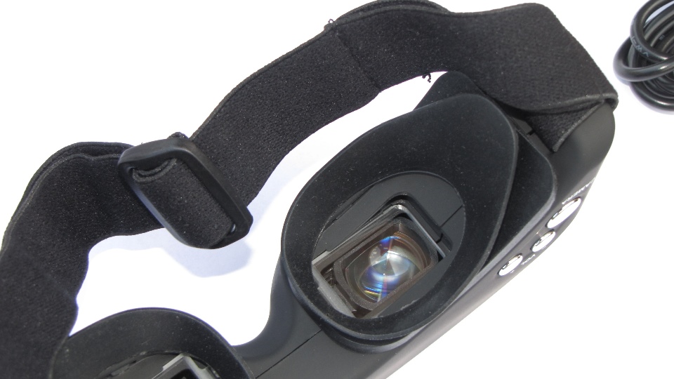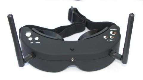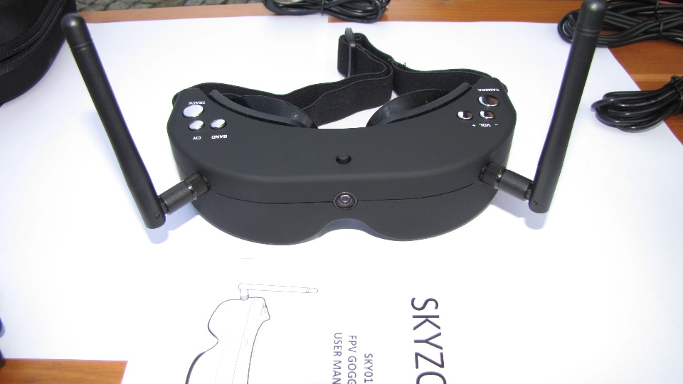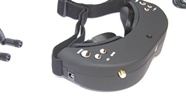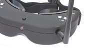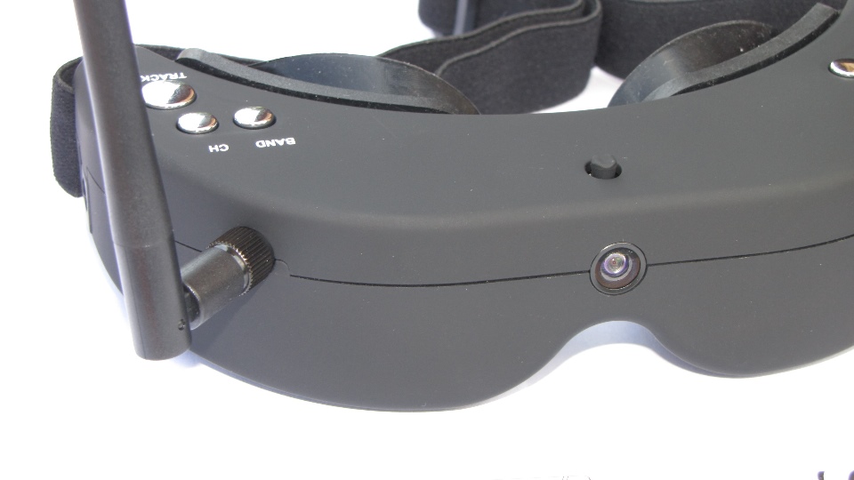 Z przodu gogli widoczna jest soczewka, to nasze trzecie oko na świat dookoła nas. Gogle dysponują wbudowaną kamerą video 640X480 za pomocą której możemy bez zdejmowania goggli obserwować np. lądujący model na lotnisku. Wszyscy którzy latali z gogglami docenią to rozwiązanie. Moment zdjecia gogli z głowy zawsze stanowił krytyczny moment w którym przez około 1-2s oczy musiały się dostosowac do światła otoczenia. Wszyscy piloci wiedzą ile może się wydazyć w ciągu 1-2s gdy model leci nisko nad ziemią. Kamerkę aktywujemy jednym kliknięciem klawisza. Obraz jest dobrej jakości, w zupełnosci wystarcza aby przeprowadzić operację lądowania. Jak każda kamera wymaga jednak dobrego oświetlenia, wieczorem lub w pochmurne dni może wystąpić szum na obrazie. Obraz z wbudowanej kamery nie jest przekazywany na wyjście zewnętrzne AV.