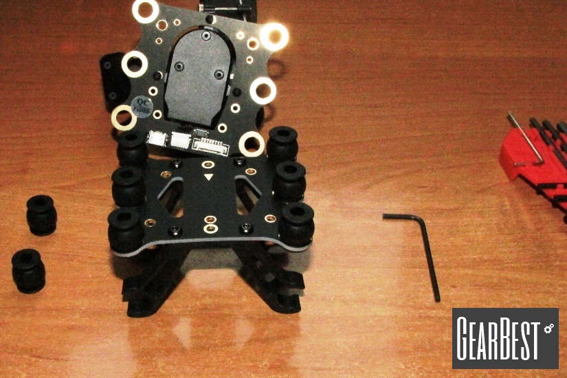 Tak jak już wspominałem na początku gimbal jest mechanicznie złożony w 90%. Oprogramowanie które jest wgrane i jego ustawienia pozwalają podjąć pracę natychmiast, po założeniu kamery i podpięciu zasilania. Proces składania jest bardzo prosty, polega na założeniu kilku wibroizolatorów oraz górnego wieszaka.