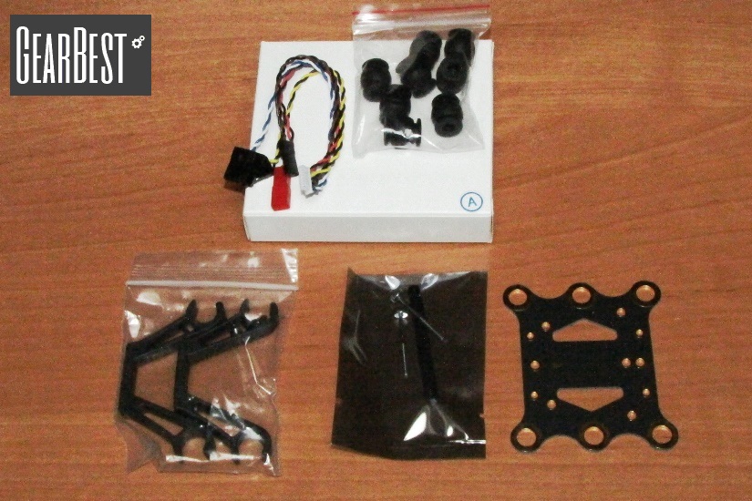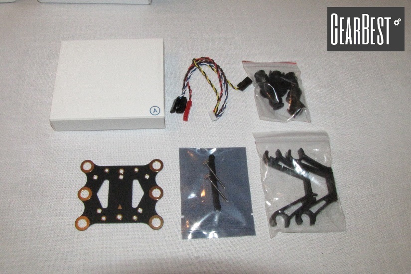 - pudełko A (płytka górna, 8szt gumek "dumpers", przewody, uchwyty pod rurkę fi 10mm, mocowanie kamery)