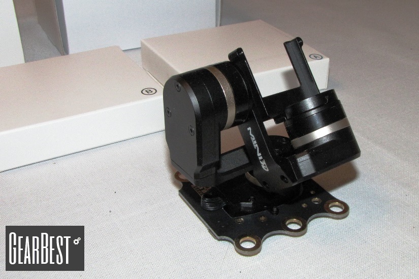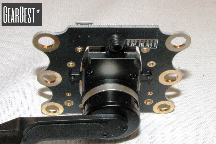 Jak widzimy gimbal możemy zasilić pakietem od 2S-4S. Pomimo iż gimbal oznaczany jest jako 3 osiowy, faktycznie zakres pracy w osi Yaw ograniczony jest do zakresu -120 do +135 stopnii.