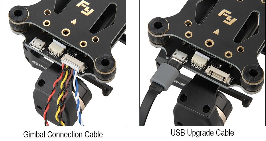 Kamera GoPro musi być zainstalowana w uchwycie zanim podepniesz zasilanie do Gimbala. Nie spełnienie tego warunku grozi uszkodzeniem silników Gimbala!